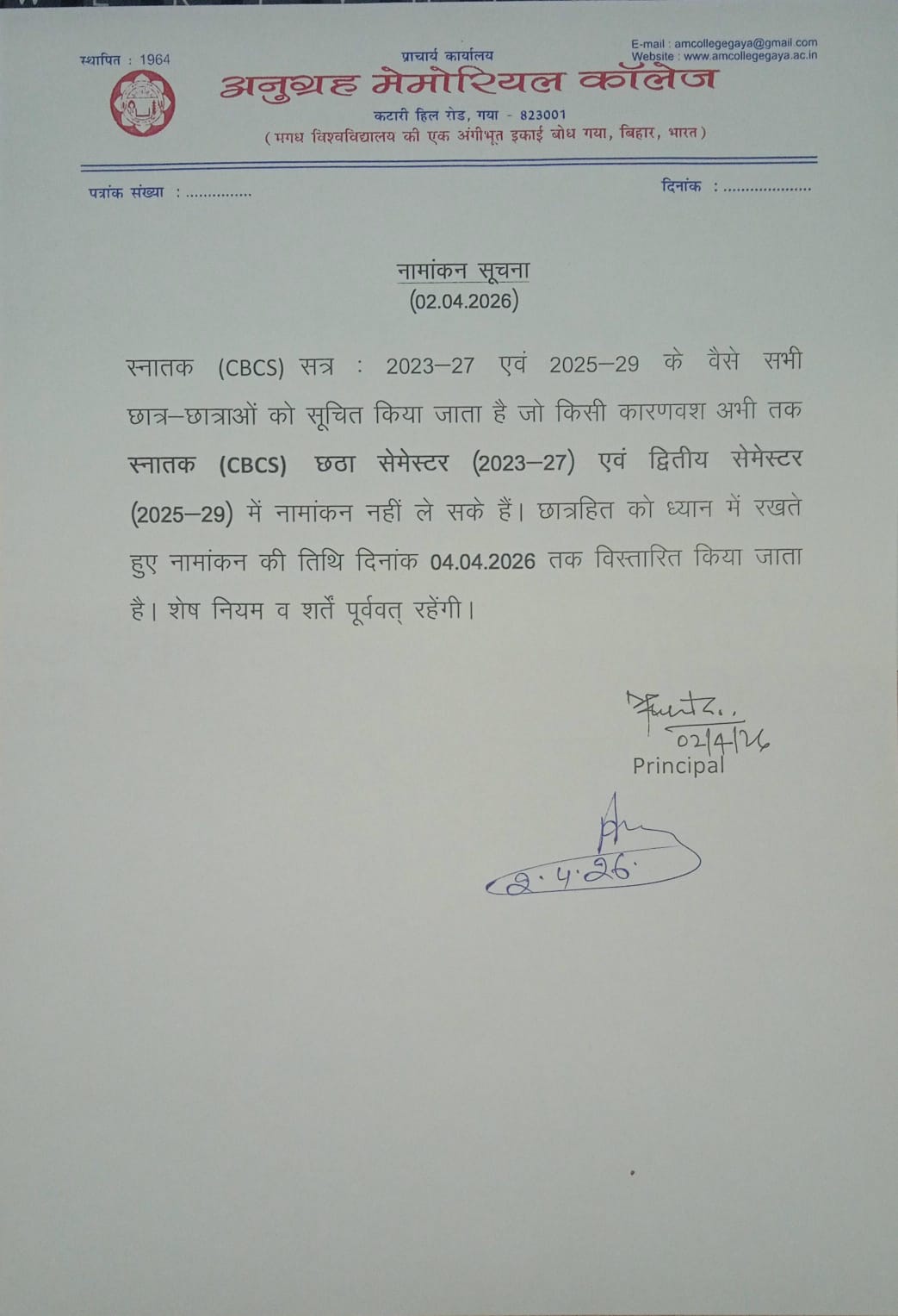 NEW NOTICE REGARDING LAST DATE ADMISSION 6TH (2023-27),2ND (2025-29) SEMESTER