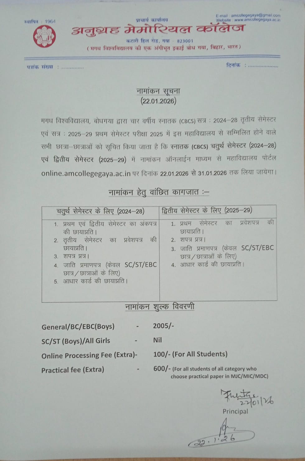 NOTICE REGARDING 4TH SEMESTER (2024-28) AND 2ND SEMESTER (2025-29)